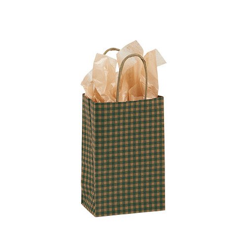 Small Green Gingham Paper Shoppers are the perfect addition to your retail store! The small shopping bags are perfect for gift items and other various wares while still remaining durable and stylish. Featuring a traditional green gingham print these bags are sure to be a hit with your customers. Sold in cases of 25 bags. Item id: 85-92696