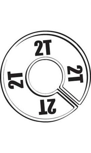 Round size dividers are a useful, cost effective way to allow your customers to see where their size is on the sales floor. Size dividers will keep your merchandise organized and accessible. Our baby/toddler size 2 Toddler dividers fit standard 1.25″ hangrail (standard size for 36″ round racks) and square tubing clothing racks. Our divider feature a plastic white ring with a black ‘2T’ to indicate the size located on 4 points of the ring. Make it easy for your customers to find the exact size they’re looking for! Our wholesale hanger accessories are available for immediate shipment. Sold at low prices!Sold in cases of 50 Sold in cases of 50 White with Black 2T, Fits 1¼” Round Hangrail, Fits 1″ Square Hangrail, Size Shown on 4 Points, 85-28-2T