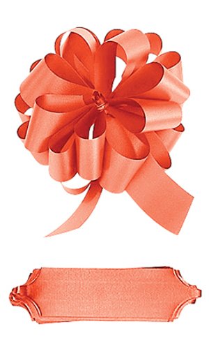 The pull bows are made of 100% Polypropylene. Our bows are conveniently sold in boxes of 50. Each are individually wrapped inside of a clear cellophane bag. Pull bows are ideal for all types of applications including packaging and crafts. All of our bows coordinate beautifully with our merchandise and gift bags. Take your packaging to the next level with our pull bows. Our orange pull bows feature a shiny finish that coordinates well with our poly and curling ribbon. Sold in 50 quantities. 5½” W x 20 Loops, Textured Double Sided Satin, Color: Orange, Stores Flat, 85-80290
