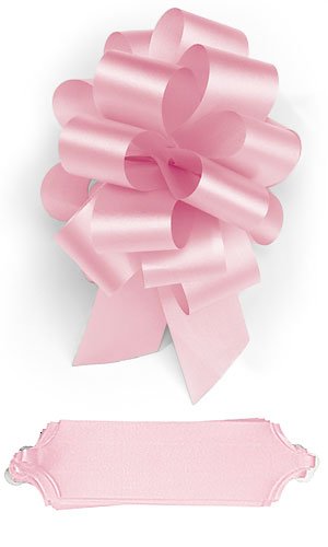The pull bows are made of 100% Polypropylene. Our bows are conveniently sold in boxes of 50. Each are individually wrapped inside of a clear cellophane bag. Pull bows are ideal for all types of applications including packaging and crafts. All of our bows coordinate beautifully with our merchandise and gift bags.Take your packaging to the next level with our pull bows. Our pink pull bows feature a shiny finish that coordinates well with our poly and curling ribbon. Sold in 50 quatities. 5½” W x 20 Loops, Textured Double Sided Satin, Color: Pink, Stores Flat, 85-80283