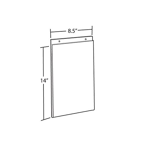 The wall mount sign holder displays information on walls and doors,maximizing advertising opportunity. The wall mount frame has pre-cut holes for hanging, hardware is not included. This sign holder can be displayed on pegboard, slatwall and gridwall wall systems and displays. Simply order the appropriate hardware on the drop down menu below. The U-frame’s side load design allows for easy insertion of printed material. The wall hanging frame is constructed of clear plastic that allows for easy viewing.Sold in 10 Quantities. 8.5″W x 14″H, Thick clear acrylic construction, Vertical Wall Mount U-Frame, Item Id: 85-162707