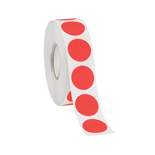 Fluorescent Red Self-Adhesive Labels are great for coordinate color-coding. Whether you’re having a sale or want to keep track of your inventory, the self-adhesive labels are a quick and easy way to mark your merchandise. Each label has a ¾” diameter, so there is space to write information accordingly. Match the labels with our colored fasteners and colored tags. Our red labels are available in a roll of 1000, making it an economical approach to pricing and marking inventory.Item Id: 85-93121