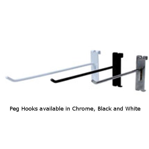 The White Peg Hooks for 3 in. grid are available in 2, 4, 6, 8, 10 and 12 inches long. Peg Hooks will work on the 3 in. on center grid panel. Sold in cases of 50. All orders will be processed as Color White as pictured in the lead photo – However this item comes in the following colors: (Chrome, Black and White) – Upon ordering this item please email us if want to choose a color other then White Sold in cases of 50. Steel Material, White, 12 Inch hook for 3 inch Grid, Also Available colors:Chrome , Black and White Available 2, 4, 6, 8, 10 and 12 inches long. 85-2084W
