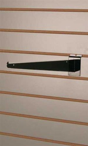 Show off your merchandise to your all of your paying customers on Slatwall shelves that are supported by these Metal Slatwall Shelf Brackets. Measuring out a 14 inches, this bracket an easily support heavy loads and can hold shelves that are up to 14″ wide. These brackets will help to increase the amount of space that you have available on your Slatwall. This bracket is at the lowest price you will be able to find, and is an absolute steal. In stock and available for immediate shipment.Sold in cases of 8 Sold in cases of 8, Black Finish, Use with 3″ on center Slatwall & Slat Grid Panels, Use with any standard 14″ depth shelf, 30 lb. load limit per bracket (this includes the weight of the shelving and bracket), Also Available in Black or White, 85-45410