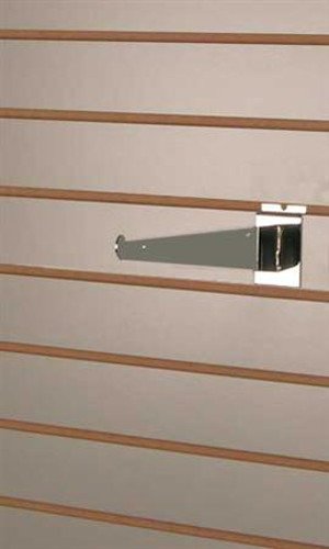 Your shelves won’t move when you use these 8″ Metal Shelf Brackets! For use on slatwall, these brackets will guarantee you a stable display! And, with a chrome finish, your display is not only sturdy, but looks great, too! So be safe and secure your shelving so that your customers will be drawn to your attractive displays! For use with slatwall, these shelf brackets are in stock and ready to ship. Sold in cases of 8 Sold in cases of 8, Chrome Finish, For use with 3″ on center Slatwall and Slat Grid Panels, Use with any standard 8″ depth shelf, 30 lb. load limit per bracket (this includes the weight of the shelving and bracket), 85-45137