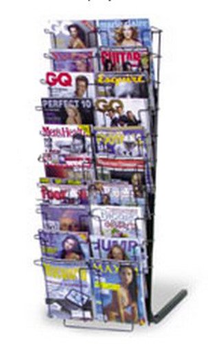 Compact design can be used anywhere in your store. Set side by side or back to back to create a larger display. Displays up to 20 – 8 1/2 in. W x 11 in. H magazines, literature, scrapbook and craft books and more. Pocket dimensions; Top row Pockets – 10 1/2 in. H, remaining pockets are 12 1/2 in. H. All pockets are 1.25 in. D and 8.75 in. W. Item Id: 85-3315