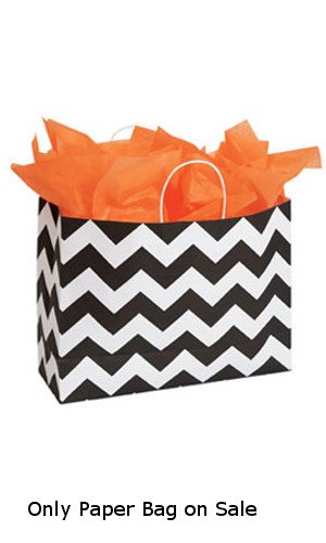 Paper Shopping Bag featuring a bold black and white chevron design this paper shopper is sure to add some style to your sales. Sold in cases of 100. 16″ x 6″ x 12″ (Vogue) ,Premium Original Design ,Perfect for Retail Stores and Boutiques. Item Id: 85-92711
