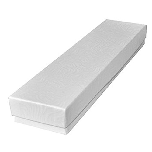 White swirl pattern cotton filled jewelry gift boxes. This size is commonly used for bracelets, chains, pens and pocket knives