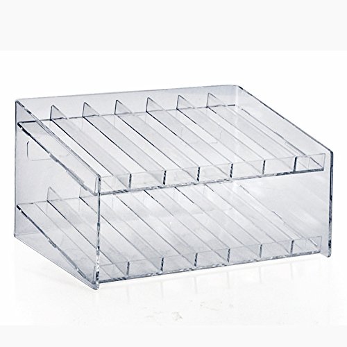 2-tiered 14 Compartment Cosmetic Counter Display for Pegboard or Slatwall measures 12″W x 6.5″ H x 8″ D. Each slot measures 1.5″. This molded acrylic display tray can be used as a free-standing counter display or attached it to an existing Standard Pegboard or Slatwall. Choose to use this unit as a cosmetic display for nail polish or vapor products or for any small product. Includes 2 plastic U-Hooks. 12″W x 6.5″ H x 8″ D Includes 2 plastic U-Hooks. Item Id: 85 – 222987