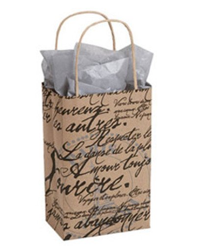 Add a touch of international flair to your store with our Paris Script Paper Shoppers! This kraft paper bag has beautiful French script printed in bold black lettering, with the Eiffel Tower in the background.Sold in cases of 25. Case of 25 5 ¼ “x 3 ¼ ” x 8 ¾ ” (Rose) Premium Original Design Kraft Bag Perfect for Retail Stores and Boutiques Item Id: 85-92834