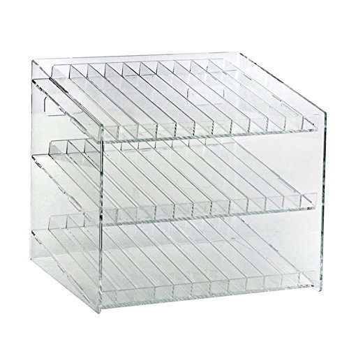 3-tiered 21 Compartment Cosmetic Counter Display for Pegboard or Slatwall measures 12″W x 10.5″ H x 8.5″ D. Each slot measures 7/8″. This molded acrylic display tray can be used as a free-standing counter display or attached it to an existing Standard Pegboard or Slatwall. Choose to use this unit as a cosmetic display for nail polish, e-juice and many vapor items or for any small product. Includes 2 plastic U-Hooks. 12″W x 10.5″ H x 8.5″ Includes 2 plastic U-Hooks. Item Id: 85 – 222883