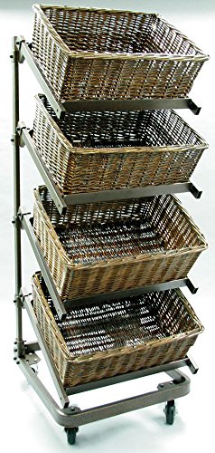 Our eye-catching waterfall basket features a durable and attractive antique bronze finish. With Large merchandisers rectangle willow baskets, displayed in a 4-tier design customers are bound to gravitate towards this innovative display rack, so pick prominent places in your store and start showcasing your retail goods today. Item Id: 85-25-472