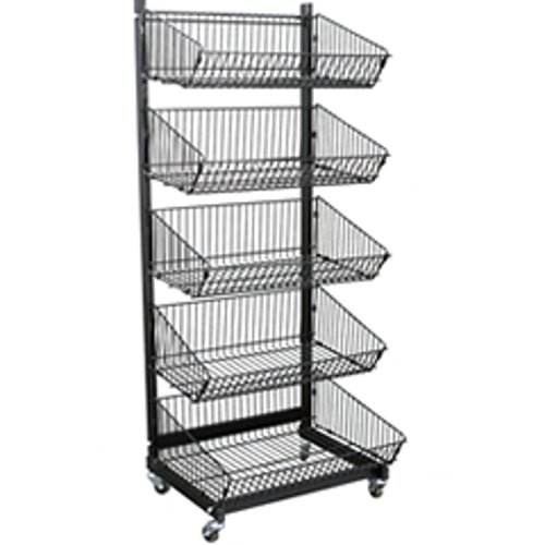 The sturdy and versatile wire basket rack is designed to organize and showcase your merchandise. Customers love to browse through this 5 Basket Impulse Display. Item Id: 85-2361