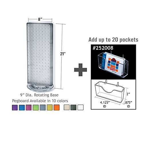 This two-sided revolving display measures 8″W x 21″H with a revolving 9″ dia. base. This unit comes with 20 pockets that measures 4.125″W x 0.875″D x 2″H each, making this item perfect for business cards or gift cards. Pockets are removable, allowing for any number of pockets to be used (up to 10 on each side). All orders will be processed as Color Almond as pictured in the lead photo – However this item comes in the following colors: (Almond, Black, Blue, Clear, Green, Orange, Pink, Purple, Red, White and Yellow) – Upon ordering this item please email us if want to choose a color other then Almond. 8″W x 21″H, Acrylic construction, 20 pockets , Available Colors (Almond, Black, Blue, Clear, Green, Orange, Pink, Purple, Red, White and Yellow), 85-700505-ALM