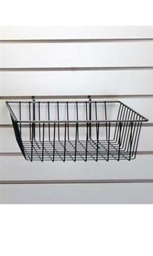 These wire baskets are a great for the stock room to help keep overstocked merchandise organized for efficient restock. Use these attractive black powder-coat finish baskets to show off any small products or knick knacks to your customers. Black powder coat finish Ideal for small merchandise Features 4 slanted front lip that graduates to 8 height in back Fits easily onto 3 OC Slatwall and Pegboard. The baskets are extremely durable providing you with service for years to come. These sturdy versatile Black Mini Grid Wire Baskets measure 12 x 12 x 4 giving you plenty of space to hold your items or products. Or you can use them on your display presentations to attract customers to your small display items. Item Id: 85-45163