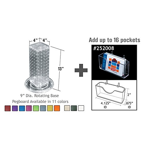 This four-sided revolving display measures 4″W x 4″D x 13″H with revolving 9″dia. base. This unit comes with 16 pockets that measures 4.125″W x 0.875″D x 2″H each, making this item perfect for business cards or gift cards. Pockets are removable, allowing for any number of pockets to be used (up to 4 on each side). All orders will be processed as Color Blue as pictured in the lead photo – However this item comes in the following colors: (Almond, Black, Blue, Clear, Green, Orange, Pink, Purple, Red, White and Yellow) – Upon ordering this item please email us if want to choose a color other then Blue. 4″W x 4″D x 13″H, Acrylic construction, 16 pockets , Available Colors (Almond, Black, Blue, Clear, Green, Orange, Pink, Purple, Red, White and Yellow), 85-700229-BLU