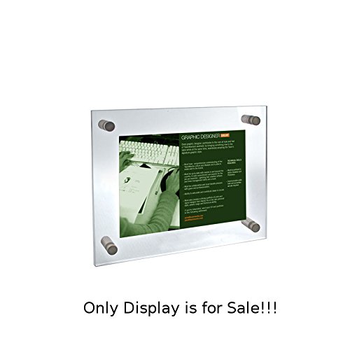 New Clear Frame 8.5-Inch W by 5.5-Inch H Acrylic Standoff Sign Holder With Caps can be used for graphic signs measuring 8.5″ x 5.5″ and includes four 0.75″ diameter satin aluminium caps and standoffs. Includes a 2-Inch border surrounding the graphic sign insert. Use this frame vertically or horizontally when mounting frames to walls and doors. Made of 3/16-Inch thick acrylic. Hanging hardware included (four sets 1.25-Inch all purpose screws with anchor). For best results, apply to a clean, non-porous surface. Item Id: 85-105511