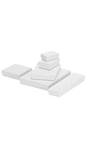 Make your purchasing decision easy with this 75 piece assortment of white cotton-filled jewelry boxes. These durable and attractive boxes are in stock and ready for immediate shipment. includes: Qty Size 15 2½”L x 1½” W x 7/8″ D 15 3 1/16″L x 2 1/8″ W x 1″D 25 3½” L x 3½” W x 1″D 10 8″ L x 2″ W x 7/8″D 5 5¼” L x 3¾” W x 7/8″ D 5 7″ L x 5½” W x 1″ D Item Id: 85-87307