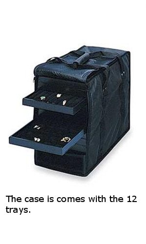 These sturdy, lightweight, water resistant, heavy duty nylon cases are designed to carry 12 1″ trays OR 8 1-1/2″ trays and inserts. For transporting merchandise, nothing works better than these Jewelry Tray Carrying Cases. Case dimensions are 16″L x 9″W x 13″H. The case comes with 12 Trays. Item Id: 85-55196