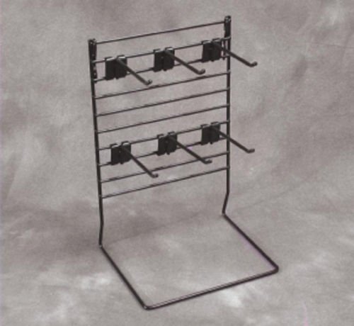 This versatile unit will sit on a counter or hang from peg and slatwall paneling. Ideal for displaying batteries, film, keychains etc… Comes with six black hooks. Great for sell-thru items.