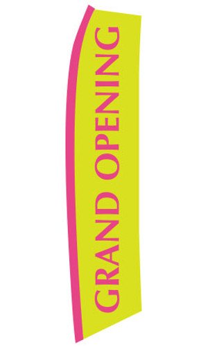 New Pink, Yellow Polyester Wave Flag – “Grand Opening” 134″H x 32″W