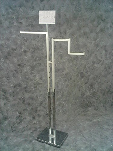 2-Way apparel rack w/ 1 straight arm and 1 crank arm, includes 5″ X 7″ sign frame. High Polish Chrome finish. Item Id: 85-MYHR-01