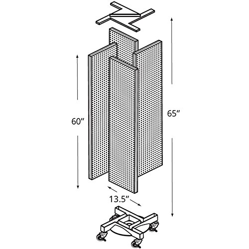 This pinwheel floor display includes four 13.5″ x 60″ H plastic pegboard panels offered in a variety of colors and comes standard with a wheeled base. Available in all 10 colors. Printing and graphics can be ordered additionally, call or email us for customization quotes. All orders will be processed as Color Black as pictured in the lead photo – However this item comes in the following colors: (Black,Blue,Clear,Green,Orange,Pink,Purple,Red,White,Yellow) – Upon ordering this item please email us if want to choose a color other then Black. 13.5″W x 60″H, come with Wheeled base, Available Colors:(Black,Blue,Clear,Green,Orange,Pink,Purple,Red,White,Yellow), Item Id: 85-700461-BLK.