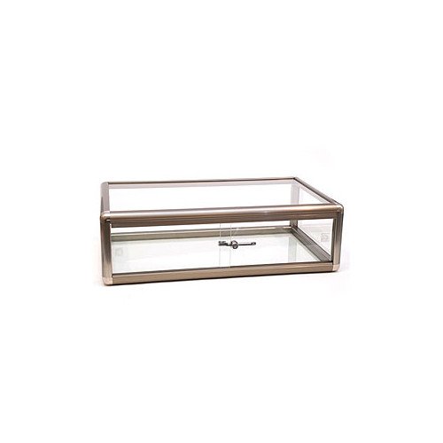 Anodized aluminum framing in a pewter finish with sliding glass doors. Tempered glass top and solid white bottom. Lock included. 30″”l x 18″”w x 9″”h. Item id: 85-17222