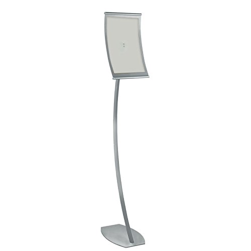 Curved Metal Floor Sign Holder 8.5″W x 14″H. This curved metal freestanding floor displays combine style with functionality. Frames include a flip-open magnetic, non glare lens for easy load and unload of graphics. Available in multiple sizes to accommodate a variety of signage. 8.5″W x 14″H , Curved metal frame, Flip-open magnetic, Non glare lens, Sleek Look , Item Id: 85-300887