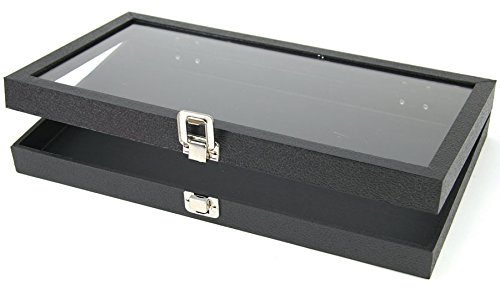 Display Tray Case Half size case – 14.75″ x 8.25″ x 2.13″ deep Black Faux Leather top quality clasps to keep locked Glass lid Use with any of our half size, It allows you to display your contents while keeping them dust free. Item Id: 85-47-124