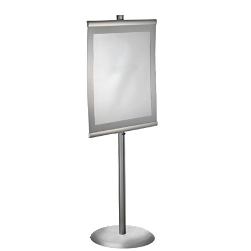 This standing metal easel frame measures 22″W x 28″H. Frame features a convenient, quick change magnetic lens for easy insertion of graphic material. Frame height is fully adjustable by sliding up and down the pole. Base measures 18″ in diameter. Overall unit height is 73″. 22″W x 28″H, Convenient, quick change magnetic lens, Easy insertion of graphic material, Fully adjustable Frame height, Item Id: 85-300870