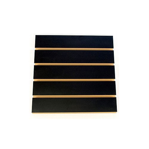 Black melamine Slatwall panel measures 4”h x 8”w with standard slotting of 3″” on center. Horizontal panels, the slots are 8” in length. Panel thickness is 3/4″” and made of (MDF) medium density fiberboard. Measures 4”h x 8”w , Black Finish 3″” on center,Made of (MDF) medium density fiberboard. Item Id: 85-01103