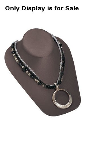 Display your necklaces in an elegant contemporary way with our Chocolate Necklace Display. The three dimensional display is an economical and stylish way to make the most of your jewelry. Features include a curved, padded faux leather display bottom that has a slight incline. The bust features an elongated forward design that allows the necklace to take center stage. The overall dimension of the display measures 6 3/4″W x 8″L x 3 1/2″H. 6 3/4″W x 8″L x 3 1/2″H , Chocolate Brown Satin Finish , Displays A Single Necklace , Elongated Forward Design, 85-55612