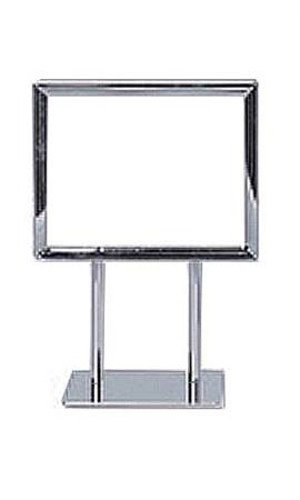 Display your signs and pictures in style with this Metal Twin Stem Sign Holder. These holders feature a chrome finish and slot on top to insert 5½”H x 7″W signs and pictures. This holder is capable of displaying a two sided message and can easily be moved anywhere in your store. The Metal Twin Sign Holder is in stock and ready for immediate shipping! Overall Dimension: 5½”H x 7″W Overall Height: 9 3/4″H, Chrome, Double Sided, Sold Individually, 85-20110