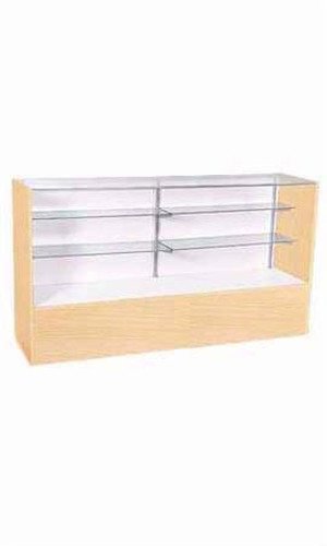 The beautiful 48″ Full Vision display cases will help enhance the way your store’s most precious items are displayed. Ready to Assemble, these maple display cases feature a tempered glass front and top with two rows of adjustable 1/4″ split glass shelves. This provides ample room to display jewelry, antiques, or other items your store carries. The full vision maple display case also feature low pressure melamine laminate exterior, with a white deck and doors. Additionally, the 48″ showcase has brushed aluminum hardware, with an optional lock and light kit. Measuring 38″ H x 18″ D x 48″ L, this four foot display case is a great choice for any retailer looking to showcase some of their inventory. In stock and available for immediate shipment. Overall Size: 38″H x 18″D x 48″L, Maple Melamine Finish, Ready to Assemble, 2 rows adjustable ¼” split glass shelves 8″ and 10″ depth, Optional Lock and Light Available, 85-65451