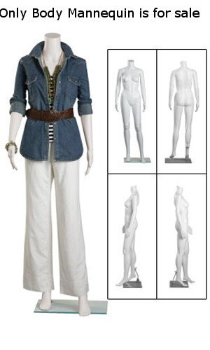 Sales depend on good merchandise displays. Its features a wide selection of mannequins, including this headless plastic female mannequin form, to help retailers highlight the latest fashions and create attractive displays to entice customers to purchase. This female cameo mannequin is attractively proportioned, full-round, and finished with a stylish Cameo-White finish. The arms, hands, and torso are detachable, making them easy to dress. Complete with a durable heavy duty plastic construction and a glass base, rod and fittings, retailers can easily attract customers to their store’s latest fashions. Showcase your merchandise today! In stock and available for immediate shipping. Size: 6, 5’4½”H, Chest: 33, Waist: 24½”, Hips 34″, 85-70355