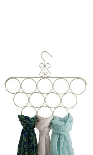 It’s easy to create beautiful showroom displays for all of your store’s scarves. With the attractive Ivory Scarf Hanger, present your finest scarves to your customers exactly how you want them displayed. The boutique ivory colored hand brushed finish matches the entire Store Supply Warehouse Boutique Ivory Collection making it easy to coordinate your entire retail space. Use in small boutiques or large stores. In stock and available for immediate shipping. 16″W x 13½”H, Each scarf ring is 3″ in dia., 12 scarf rings, Color: Ivory, 85-60619