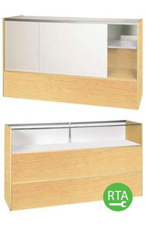 The elegant Maple Jewelry Showcase with a tempered glass front and top is a modern classic that will give you years of affordable elegance and dependability for your jewelry store. Featuring a concealed rear storage area and white sliding rear doors, this jewelry case makes it easy for you to display your most precious gems. With a low pressure melamine laminate exterior and white interior, this maple jewelry showcase will match the other display cases in your store. Measuring 38″H x 18″D x 70″L, with a glass display area measuring 12″ high, retailers can easily showcase their store’s finest jewelry. Optional lock and light kit available. In stock and ready for immediate shipment. Overall Size: 38″H x 18″D x 70″L, Display Area is 12H” x 18″D, Maple Low Pressure Laminate Melamine Finish, Ready to Assemble, Concealed Rear Storage Area, 85-65453