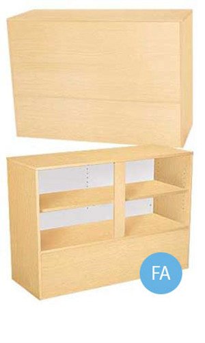 Service counters help improve efficiency and provide quality customer service. These durable maple service counters offer a variety of features, including an adjustable rear storage shelf, perfect for storing accessories, parts, tools or other supplies your employees may need. The service counter features a sturdy 3/4″ top, sides, shelves, and front lower panel. Additionally, the 34″ high top surface complies with ADA guidelines. Top work surface is 18″ deep. The low-pressure melamine laminate maple exterior finish is designed to match our entire maple display case collection. Overall dimensions measure 34″H x 18″D x 48″L. Fully assembled and ready to ship. Overall Size: 48″L x 34″H x 18″D, Maple Low Pressure Laminate Finish, Fully Assembled , Adjustable rear storage shelf, 85-65409