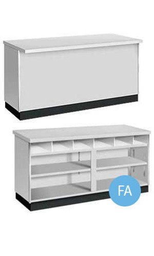“The service counters from Store Supply Warehouse are designed with practicality in mind. The Metal Framed Gray 70″” service counter features adjustable rear storage shelves and bins to house supplies, tools or bags, increasing productivity and efficiency, leaving the customers happy with their service. With a gray melamine laminate exterior and aluminum metal frame, the service counter will add a sleek modern look to any retail business. The 34″” high counter top surface complies with ADA guidelines. The counter also features fully finished sturdy 3/4″” top, sides, shelves and front lower panel and a recessed black kick-plate. Overall measurements include 34″”H x 24″”D x 70″”L. Ready to ship. All orders will be processed as Color Grey as pictured in the lead photo – However this item comes in the following colors: (Black,Maple and Grey) – Upon ordering this item please email us if want to choose a color other then Grey” 70″L x 34″H x 24″D, Recessed black kick-plate, 34″ high top surface complies with ADA (Americans with Disabilities Act), Ships Assembled, 85-65506