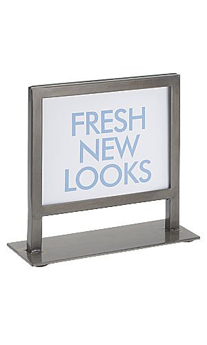 You don’t have to sacrifice style or durability when it comes to sign holders. You can have both with this Raw Steel Boutique Countertop Sign Holder! These sign holders fit 5.5″ x 7″ signs and pictures while matching perfectly with raw steel products. This specific sign holder features a sleek raw steel finish for a durable base and contemporary feel. All holders are in stock and available for immediate shipment! Overall: 7¼”L x 7″H, Fits 5½” x 7″ Signs, Sleek Raw Steel Finish, Sold individually, 85-60589