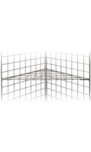 Create amazing displays with these Raw Steel Grid Corner Shelves. These shelves are fabulous additions to your wire grid floor towers, and will make any setting look much better! These triangular shelves can easily slip right onto the wire grid and will also offer extra stability between two tall panels. These shelves are extra durable and will add some much needed extra space to any Gridwall unit. The raw steel finish on these corner shelves goes great with the rest of our raw steel collection, but will still look great with other pieces, too. In stock and available for immediate shipment. Wire grid panel accessory, Raw steel finish, Corner shelves, Extra stability, 85-40509