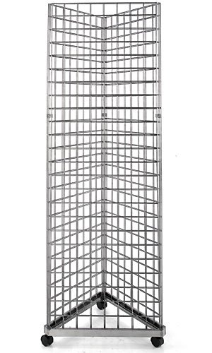 Simplify your product arrangements on this all inclusive triangle grid tower in our popular new raw steel finish! This unit comes complete with 3 wire grid panels, connectors, and a base with casters, making assembly very easy! Quickly and easily assemble the tower and add your choice of accessories for a truly magnificent merchandise presentation. Measuring at 6 ½’, this Gridwall tower is a great height, and will add the much needed space that you need for your showroom. The stylish Raw Steel Finish looks great in any setting, but goes especially well with the rest of our Raw Steel collection. The mobility and assembly of the unit are great for transporting and quick, easy selling! In stock and available for shipping immediately. Raw Steel finish, Comes with connectors and base w/casters, 6½”H unit, 24″ x 24″ x 24″, Grid accessories sold separately, 85-40526