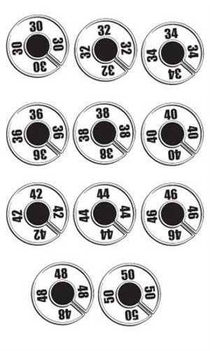 Round size dividers are a useful, cost effective way to allow your customers to see where their size is on the sales floor. Size dividers will keep your merchandise organized and accessible. Our men’s size divider variety pack features three dividers in each of the following sizes: 30, 32, 34, 36, 48, 40, 42, 44, 46, 48, 50. They fit standard 1¼” hangrail (standard size for 36″ round racks) and 1″ square tubing clothing racks. Our divider feature a plastic white ring with a black numbers to indicate the size located on 4 points of the ring. Make it easy for your customers to find the exact size they’re looking for! Our wholesale hanger accessories are available for immediate shipment. Sold at low prices! Includes 3 each of: 30, 32, 34, 36, 40, 42, 44, 46, 48 and 50, Bold Black Lettering, Fits standard 1¼” round and 1″ sq. hangrail, Size located on 4 points, 85-28103