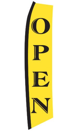 Keep your message on constant display with the Wave Flag. These polyester flags remain readable and “fly” even when there is no wind. Use the wave flag to highlight that your store is Open and ready for business! Use with the flagpole and a ground spike to complete your display. Pole and ground spike sold separately. **Note: These flags are made to withstand up to 25mph winds. They should be brought in for any wind speeds over that.Dimensions: 134″H x 32″W Color: Yellow, Black Slogan: Open Flag pole and/or ground spike sold separately,85-18253