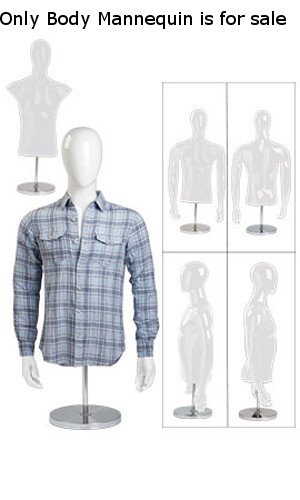 en’s Glossy White Half Body Forms are great for showing off your mens shirts, ties, coats and scarves! The Men’s White Glossy Half Body Form measures 54″ Tall when fully extended with a 37 1/2″ Chest and a 24 1/2″L Torso. The Round Chrome Base is included with the purchase of the half body forms. 54″ Tall when fully extended, Glossy White Finish, Measurements: 37 1/2″ Chest; 24 1/2″L Torso, Round Chrome base included, 85-70660
