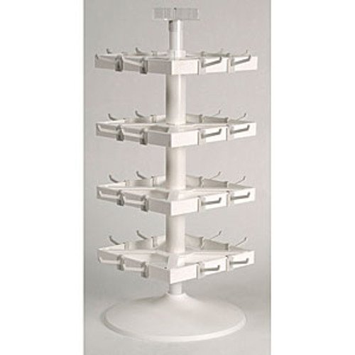 4 tier Counter Rack Spinner, White Finished, Plastic Material,2 Hooks in each side of Tier, 8 Hooks in each Tier.32 Hooks Comes with this item,85-29021