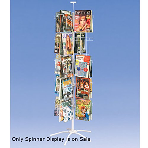 The Magazine & Literature Spinner has 5 tiers with a total of 40 pockets. Each pocket is 1 1/2 in deep and will accept material up to 8 1/2 in x 12 1/2 in. Sign holder included. Available in White.Powder Coated Steel 22 in. W x 22 in. D x 69 in. H White,85-3213