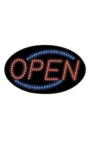 This LED Open Sign is lightweight and easy to hang from any window in your store. Neon signs can be left on for 24 hours a day, seven days a week, 365 days a year, for decades without burning out. This sign is 21″W x 13″H and plugs into an ordinary 110v receptacle. The Oval Red & Blue LED Open Sign attracts shoppers and lets them know you’re open for business. The sign cycles from O-P-E-N and has a can be switched from stationary to flashing. 21″W X 13″H” X 1 ¼” Thick, Red & Blue LED Lights, Stationary & Flashing Positions, Sign Cycles From O-P-E-N to ‘Full Flash’, 85-18334