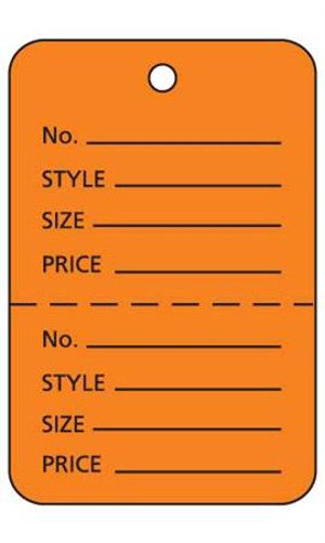 It’s easy to tag entire stores with our Orange Unstrung Large Coupon Price Tags. Measuring 1-3/4″ W x 2-7/8″ H, all necessary information can be written in the spaces provide for No., Style, Size, and Price, which are featured on both top and bottom of the perforated tags in order to provide the customer with a coupon to record their purchase. Using our colored price tags, retailers can easily departmentalize or color-code inventory for better record keeping. 1000 per carton, 1¾”W x 2⅞”H, Orange, Perforated, 85-93129